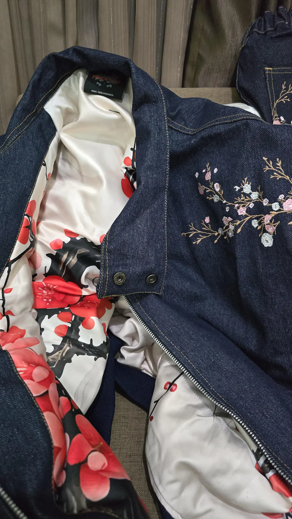 The Setsuna Denim Jacket is our take on the oversized outerwear inspired by Japanese Streetwear. Custom-made lining that we made ourselves from the sakura trees. Perfect for layering and for those who appreciate small details.