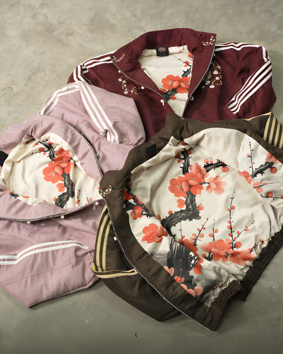 Custom sakura print lining that adds a hidden detail inside the jacket